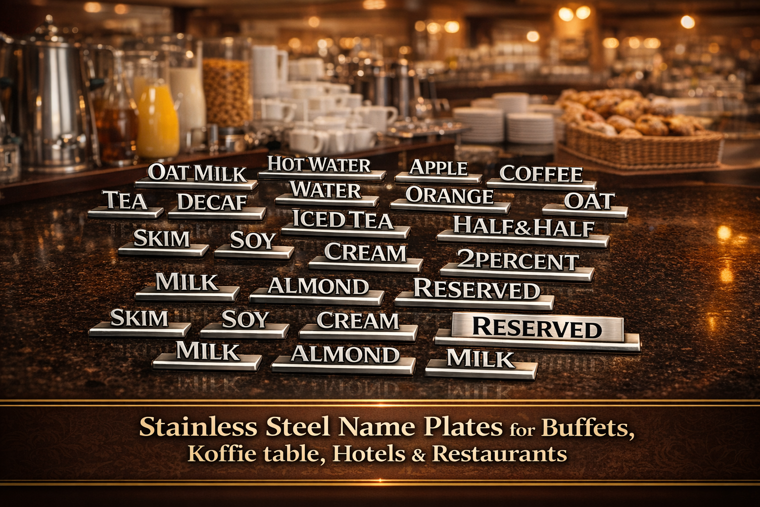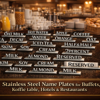 Elevate your presentation with our premium stainless steel name plates – designed specifically for buffets, hotels, restaurants, and banqueting environments.