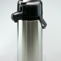 This double-wall stainless steel airpot features a durable brushed stainless steel body combined with a black pump head and handle for a clean, professional appearance. Designed for intensive daily use, it keeps beverages hot for extended periods while ensuring smooth and hygienic dispensing.