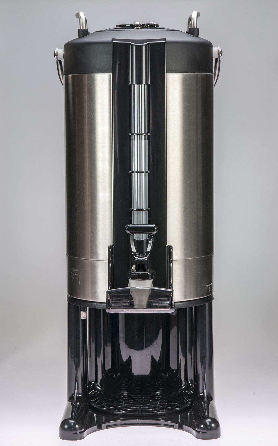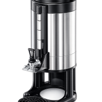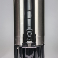 Description of High-Capacity Stainless Steel Beverage Urn with Sight Gauge, Tap and Black Stand