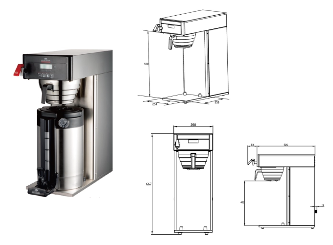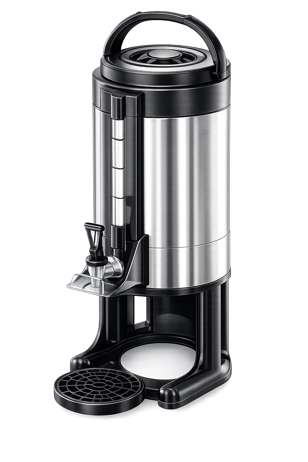 - Stable black stand with drip tray for safe and clean operation