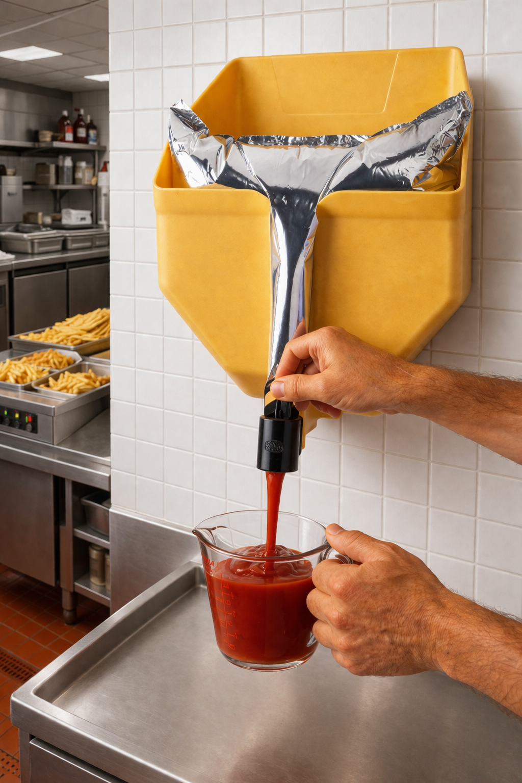 - Designed for thick products such as ketchup, mustard, syrups, sauces, and fruit concentrates