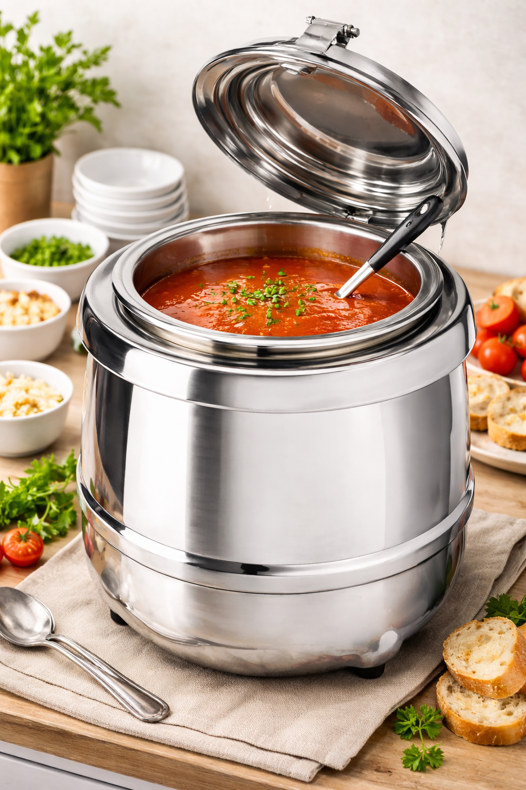 ✔ Keeps soup at serving temperature for extended periods