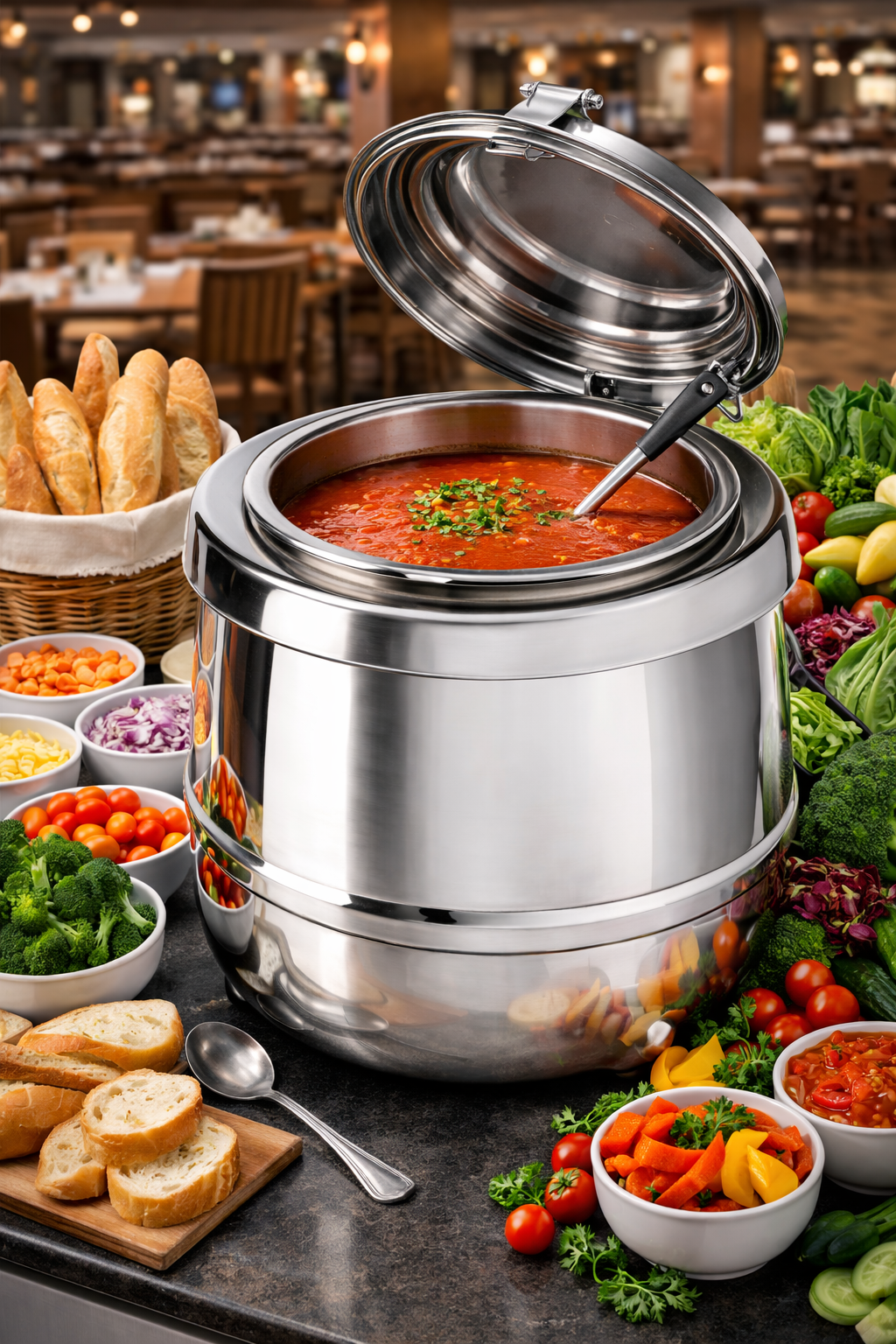 Experience a new standard in food presentation and temperature control with our premium double-wall vacuum stainless steel soup kettle.
