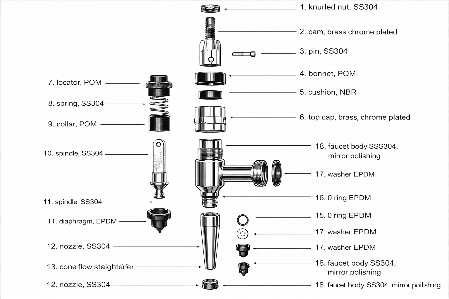 Experience the ultimate in smooth pour performance with our Stout Nitro Faucet SF-01, designed for coffee, stout, and other nitro-infused beverages. Crafted from high-grade 304 stainless steel, each faucet undergoes fine hand polishingfor a sleek, durable, and hygienic finish that meets NSF #18 certification standards for food safety.